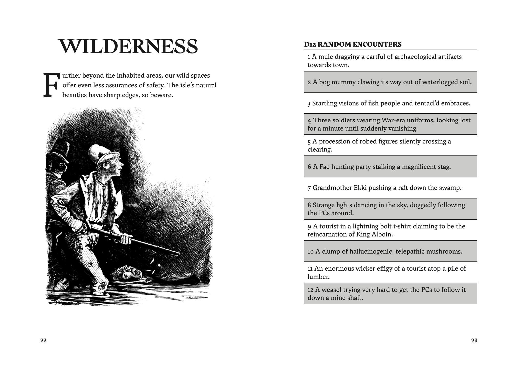 There's a lot of weird stuff going on, enough so that it feels reasonably complete, despite the relative lack of information. Having a more frank explanation of the Piper or what Changelings are would be appreciated. In its current state, the referee should be prepared to not have all the answers. A creative referee with some time to prepare could run this world.